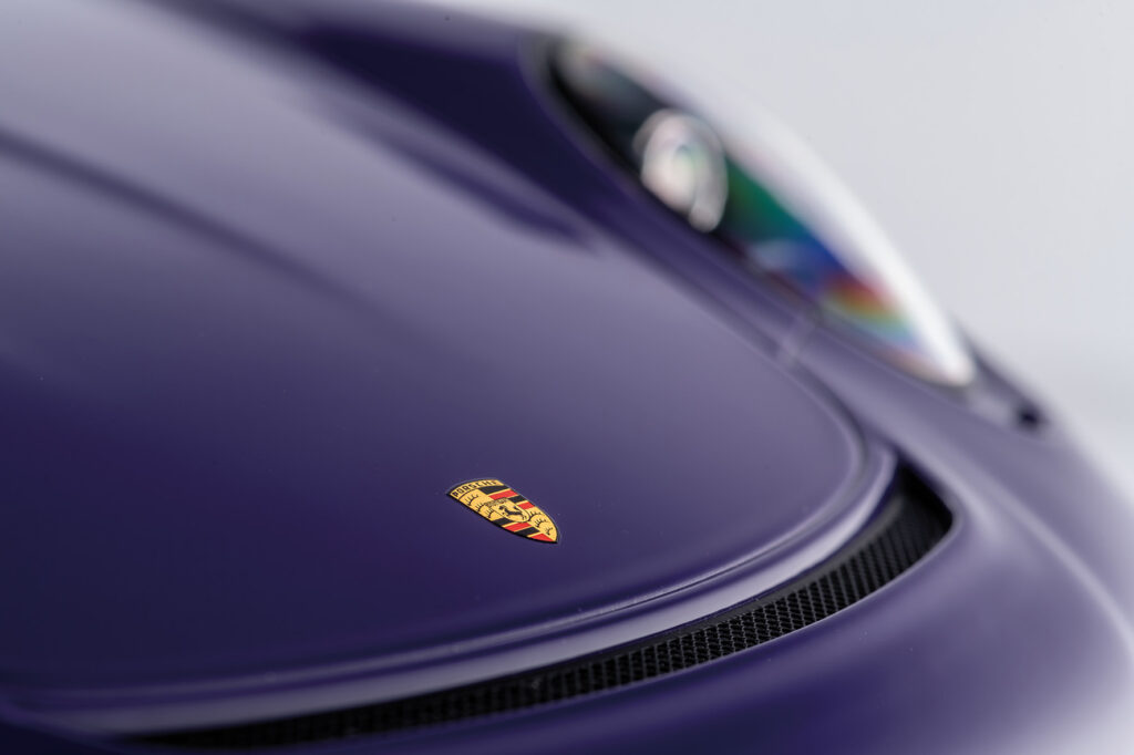 The special resin material enables the flawlessly smooth surfaces of the body, which can be painted multiple times in the original vehicle colors received. The final layer of clear lacquer and careful polishing by hand create the incomparable deep shine that makes the model sparkle from every perspective. The mirror-smooth glazing also contributes significantly to this. All exterior and interior details correspond exactly to the model vehicle - right down to the windscreen washer nozzle or the loudspeaker cover on a parcel shelf. Soft rubber tires in the correct dimensions and with the correct profile prove the meticulous implementation as well as the metal wheel suspensions.