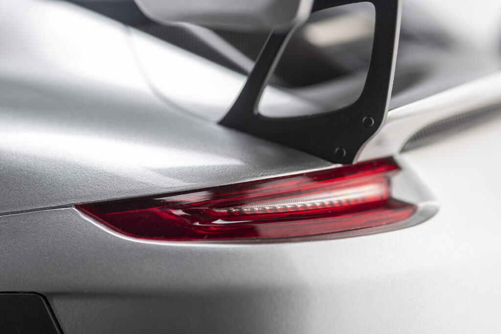 The special resin material enables the flawlessly smooth surfaces of the body, which can be painted multiple times in the original vehicle colors received. The final layer of clear lacquer and careful polishing by hand create the incomparable deep shine that makes the model sparkle from every perspective. The mirror-smooth glazing also contributes significantly to this. All exterior and interior details correspond exactly to the model vehicle - right down to the windscreen washer nozzle or the loudspeaker cover on a parcel shelf. Soft rubber tires in the correct dimensions and with the correct profile prove the meticulous implementation as well as the metal wheel suspensions.