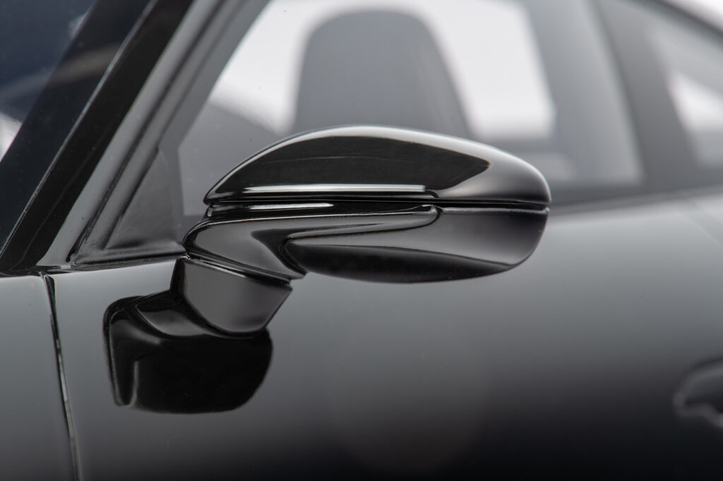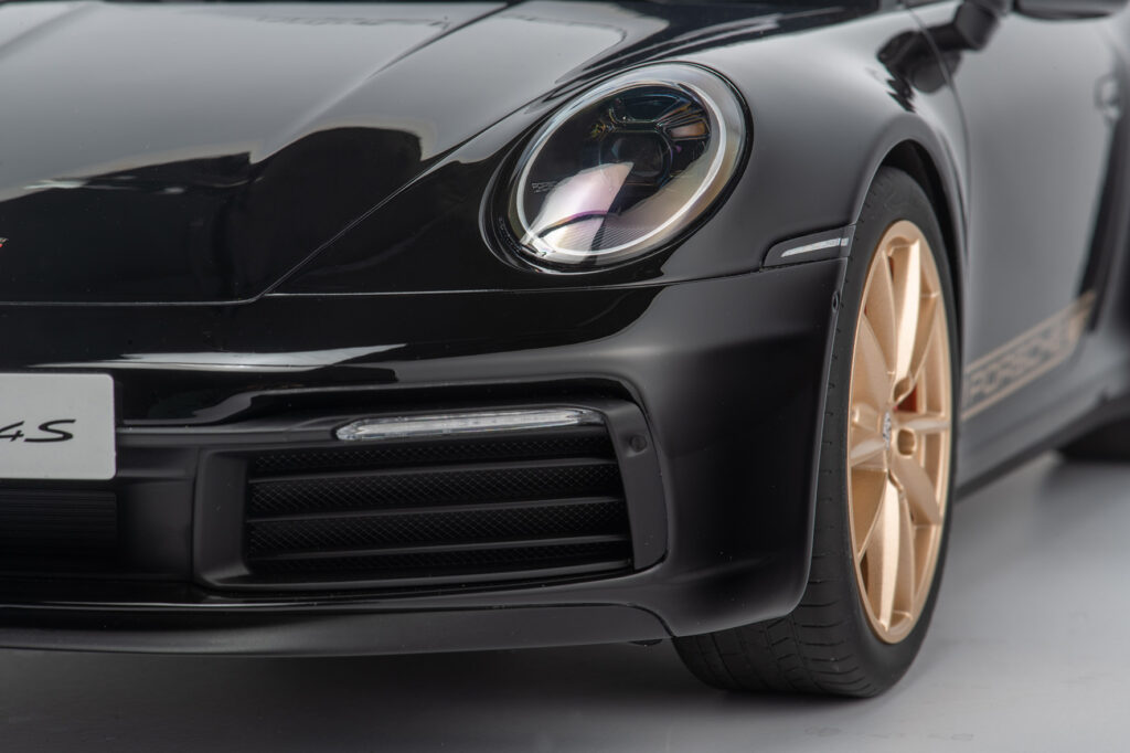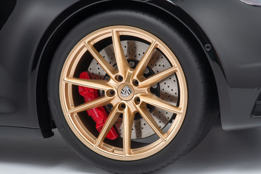 The special resin material enables the flawlessly smooth surfaces of the body, which can be painted multiple times in the original vehicle colors received. The final layer of clear lacquer and careful polishing by hand create the incomparable deep shine that makes the model sparkle from every perspective. The mirror-smooth glazing also contributes significantly to this. All exterior and interior details correspond exactly to the model vehicle - right down to the windscreen washer nozzle or the loudspeaker cover on a parcel shelf. Soft rubber tires in the correct dimensions and with the correct profile prove the meticulous implementation as well as the metal wheel suspensions.