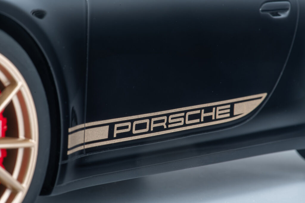 The high-quality models measure around 50 to 70 centimeters in length and about 25 centimeters in width. They weigh between four and eight kilograms. Each copy is delivered with a single showcase that protects the model from dust and at the same time guarantees a noble presentation with the base plate. A photo-etched plaque made of semi-matt metal documents the exact vehicle type and the exact numbering of the model delivered - this makes each individual item unmistakable, like the chassis number of an automobile.